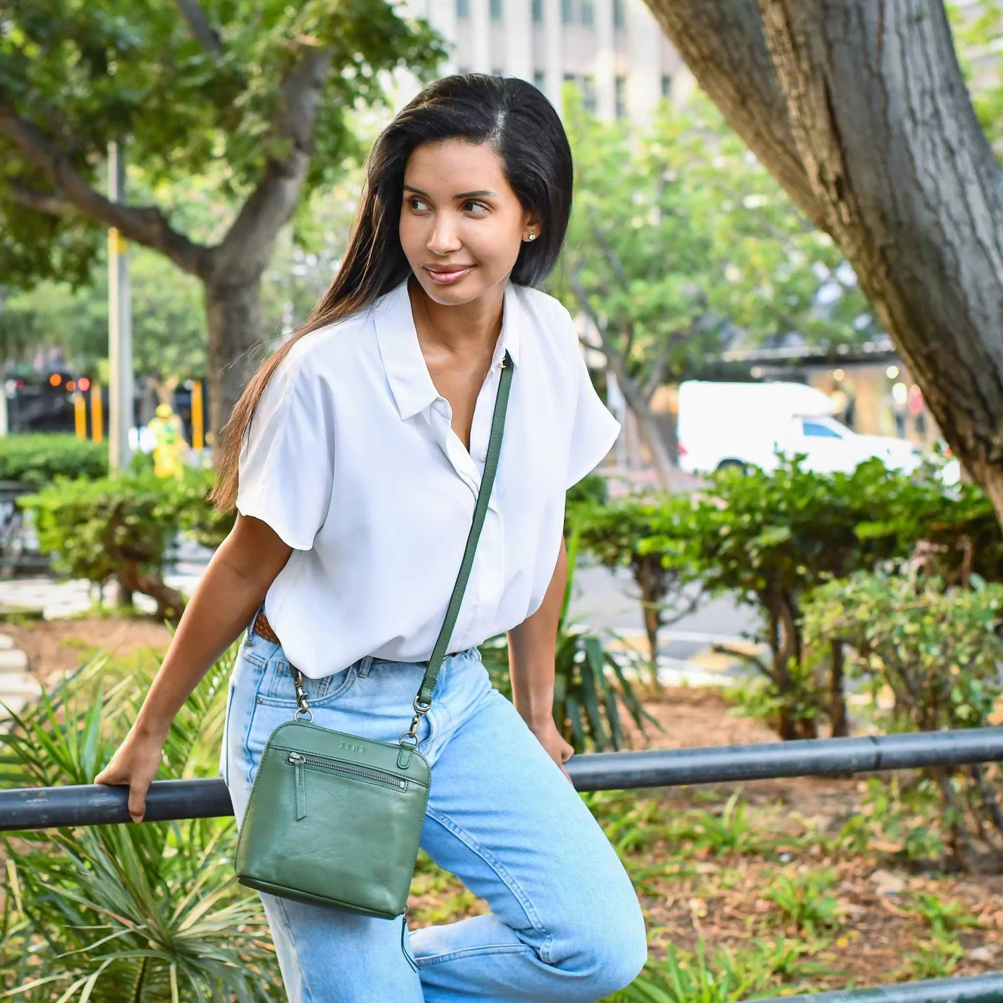 The perfect balance between style and function, for a night on the town or a Saturday market. This compact cross body bag fits your essentials and has a slide-in front pocket for your cell phone or extra change.